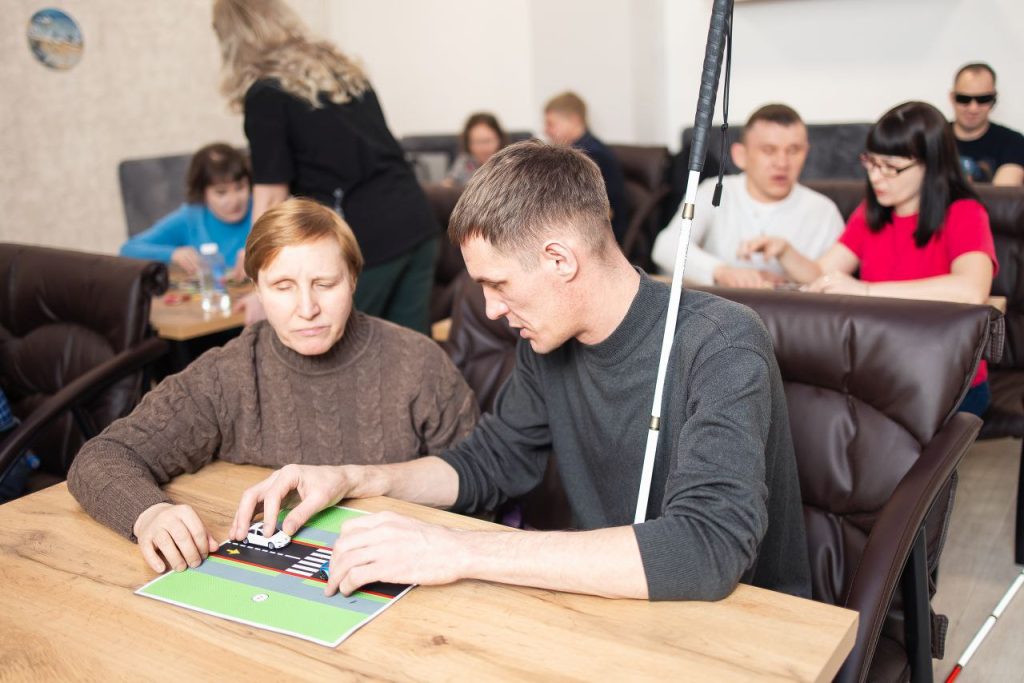 Специализируемся на занятиях для незрячих и слабовидящих людей всех возрастов. Занятия направлены на развитие, социальную адаптацию и интеграцию в общество. Они проходят в различных регионах страны в рамках программы «Особый взгляд».